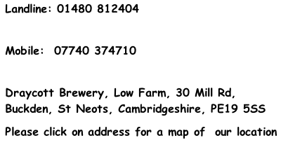 Draycott Brewery, Low Farm, 30 Mill Rd, Buckden, St Neots, Cambridgeshire, PE19 5SS Email: sales@draycottbrewery.co.uk Mail: sales@draycottbrewery.co.uk